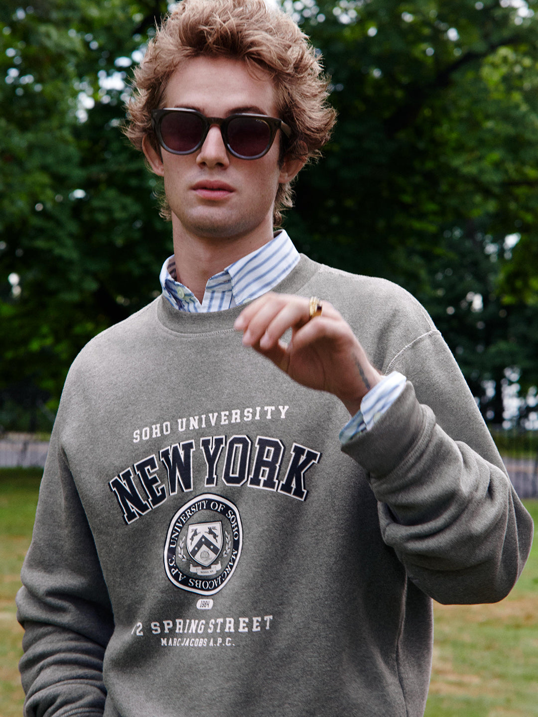 Marc Jacobs and A.P.C. debut a 26-piece capsule collection that celebrates the brands’ shared 1980s roots and distinct cultural perspectives. The collaboration reinterprets collegiate style with layered fabrics, precise detailing, and archival references from Paris and New York. Rooted in a friendship that began in the 1990s, this collaboration reflects the natural connection between Marc Jacobs and Jean Touitou and the creative worlds they have each built.