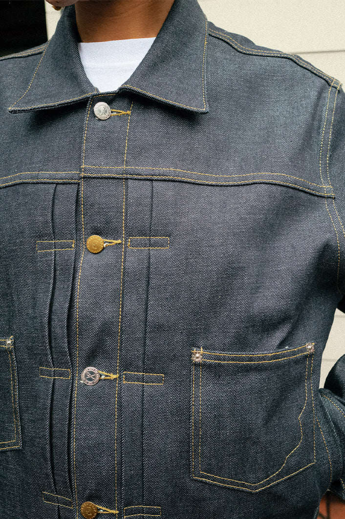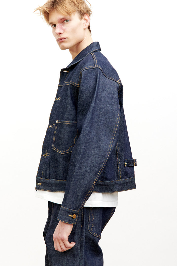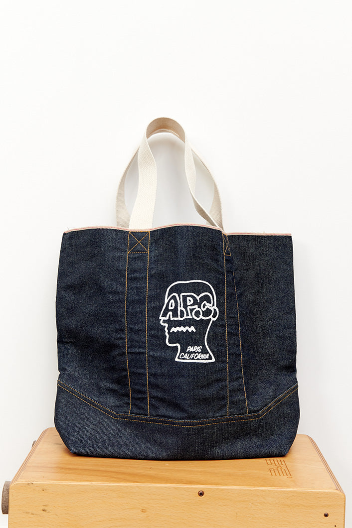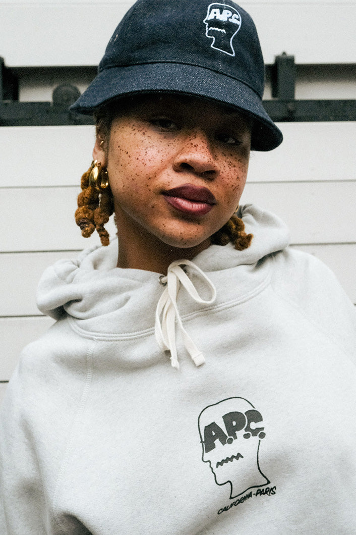 "Der indigoblaue Type00-Denim von Brain Dead wird hier neu interpretiert und in Form einer Trucker-Jacke, eines Fischerhuts und einer Tote Bag umgesetzt. Ein Hoodie und ein T-Shirt mit dem Brain Dead Hed-Logo, das durch das A.P.C.-Signet gehackt wurde, runden die Kollektion ab."