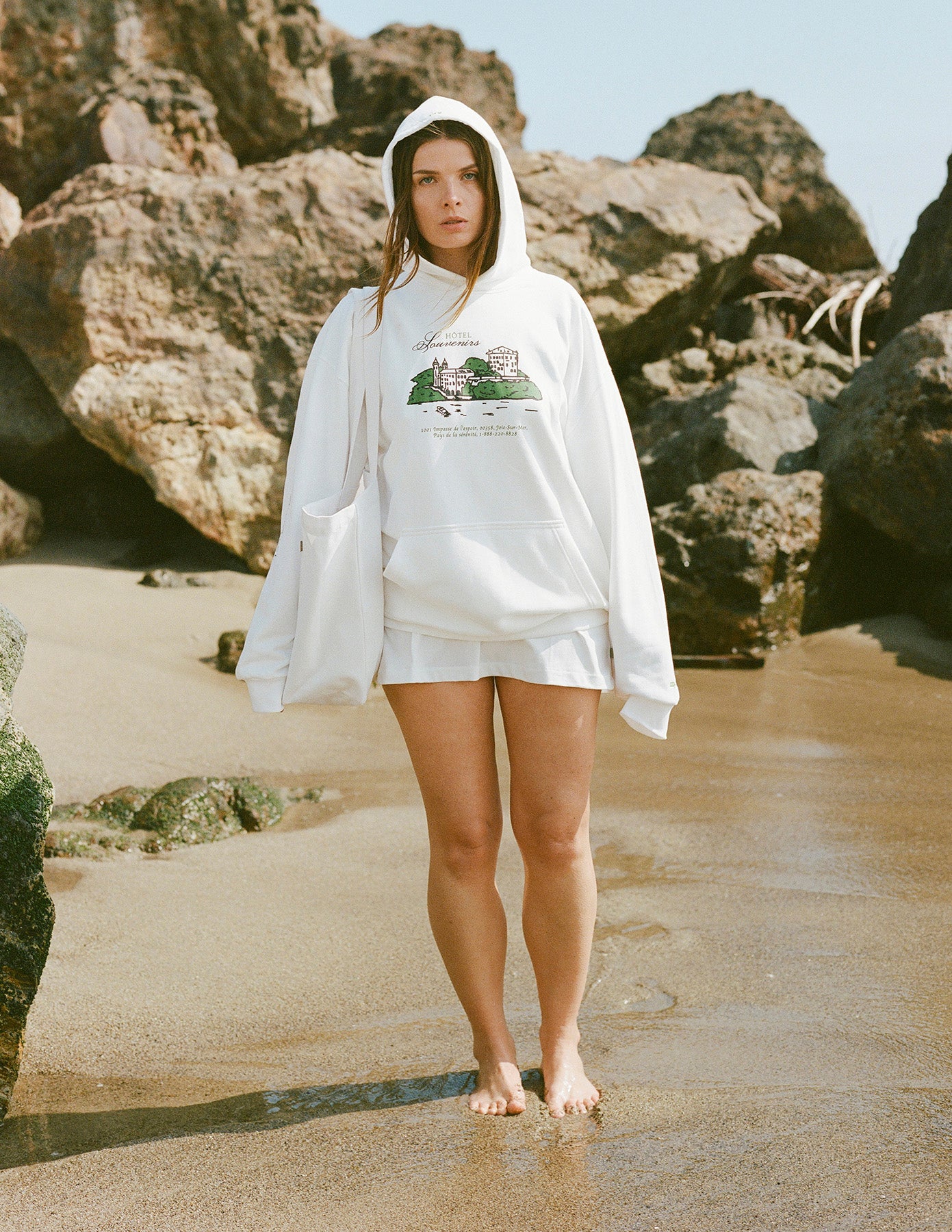 JJJJound beschreibt dieses Hotel wie folgt: „Für diese Zusammenarbeit mit A.P.C. Haben wir ein ‚imaginäres Hotel‘ in einer utopischen Welt erfunden, wo sich alle Ereignisse genau so entwickeln, wie wir es erwarten, um so die Überlegenheit des Konzepts gegenüber der tatsächlichen Manifestation hervorzuheben.“