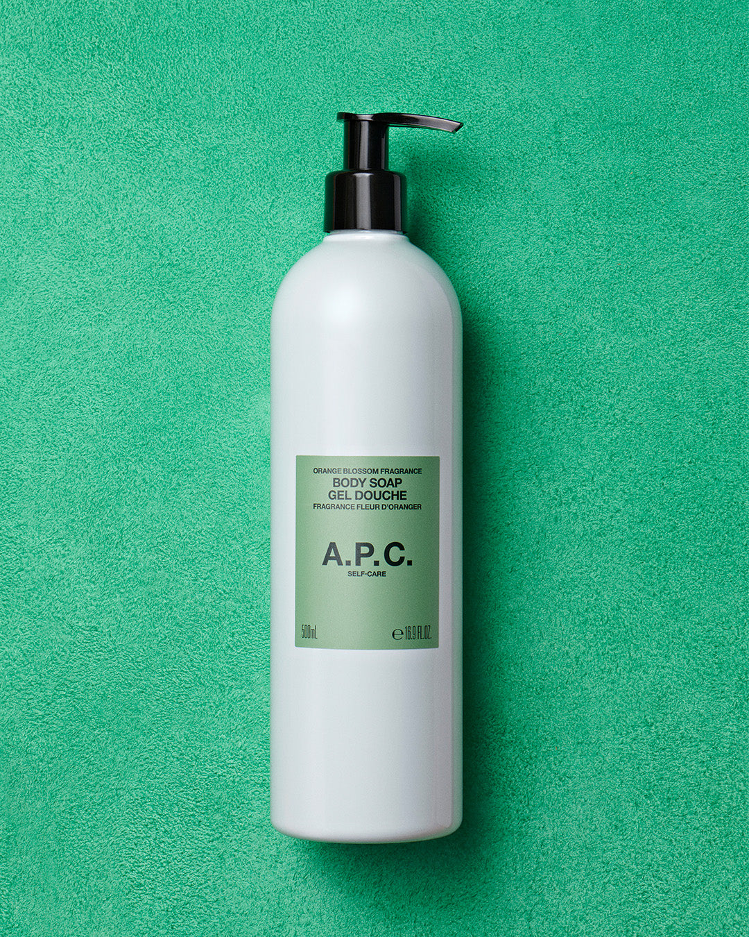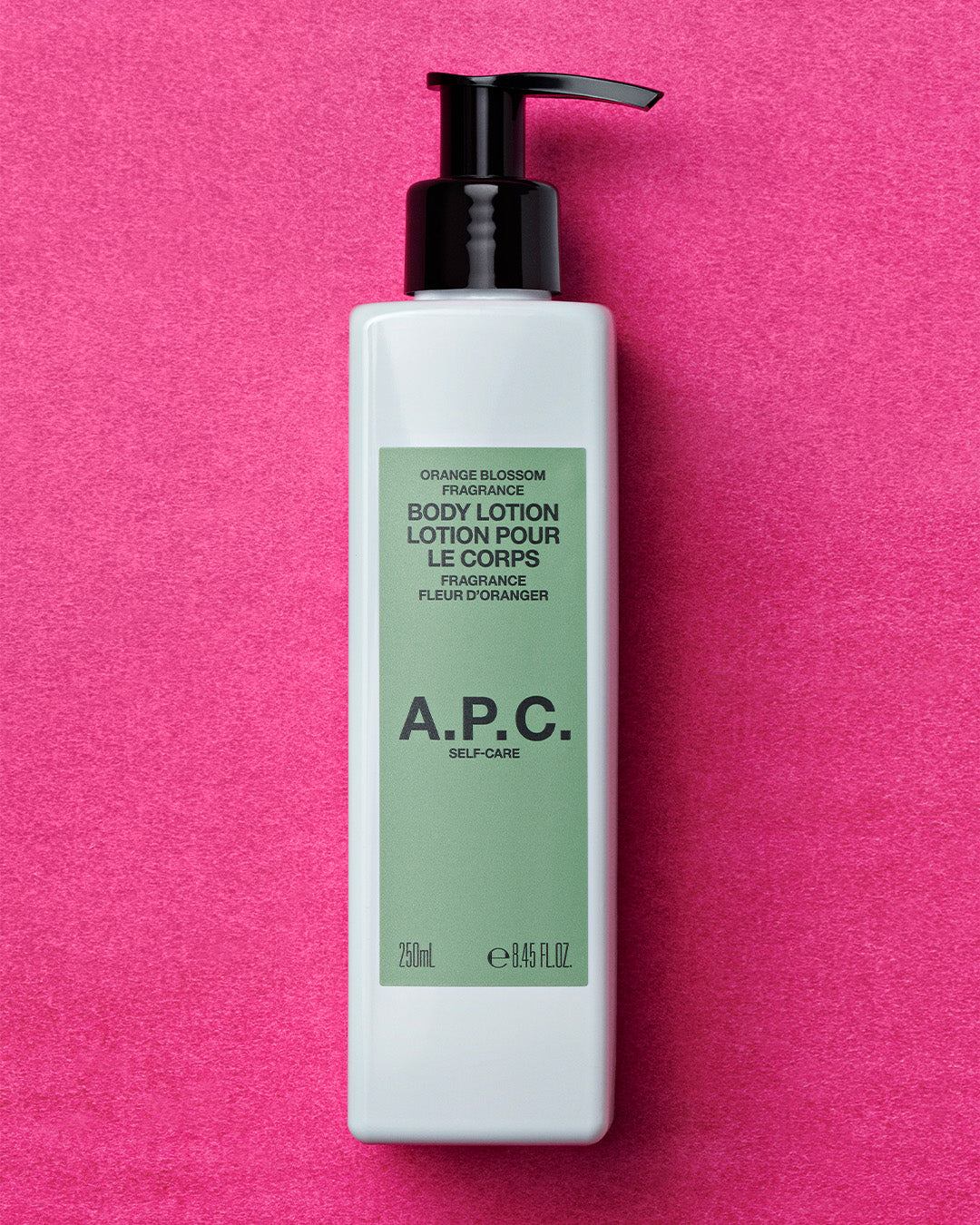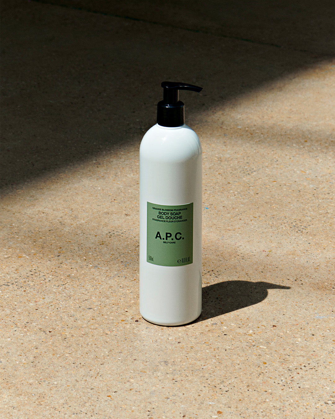 Die Orangenblüte, die seit der Antike in der Parfumherstellung und der Küche geschätzt wird, steht im Mittelpunkt der ersten in Frankreich hergestellten A.P.C. Body-Care Reihe, die aus sechs Produkten in einem schlicht gehaltenen Design besteht und deren Inhaltsstoffe zu mindestens 98% natürlichen Ursprungs und überwiegend bio-zertifiziert sind. Die auch für die Haut stressabbauenden Eigenschaften der Neroli-Essenz, die aus der Blüte des Bitterorangenbaums gewonnen wird, lässt sie in der Liste der Substanzen stehen, die von Apothekern des 18. Jahrhunderts angeboten wurden.