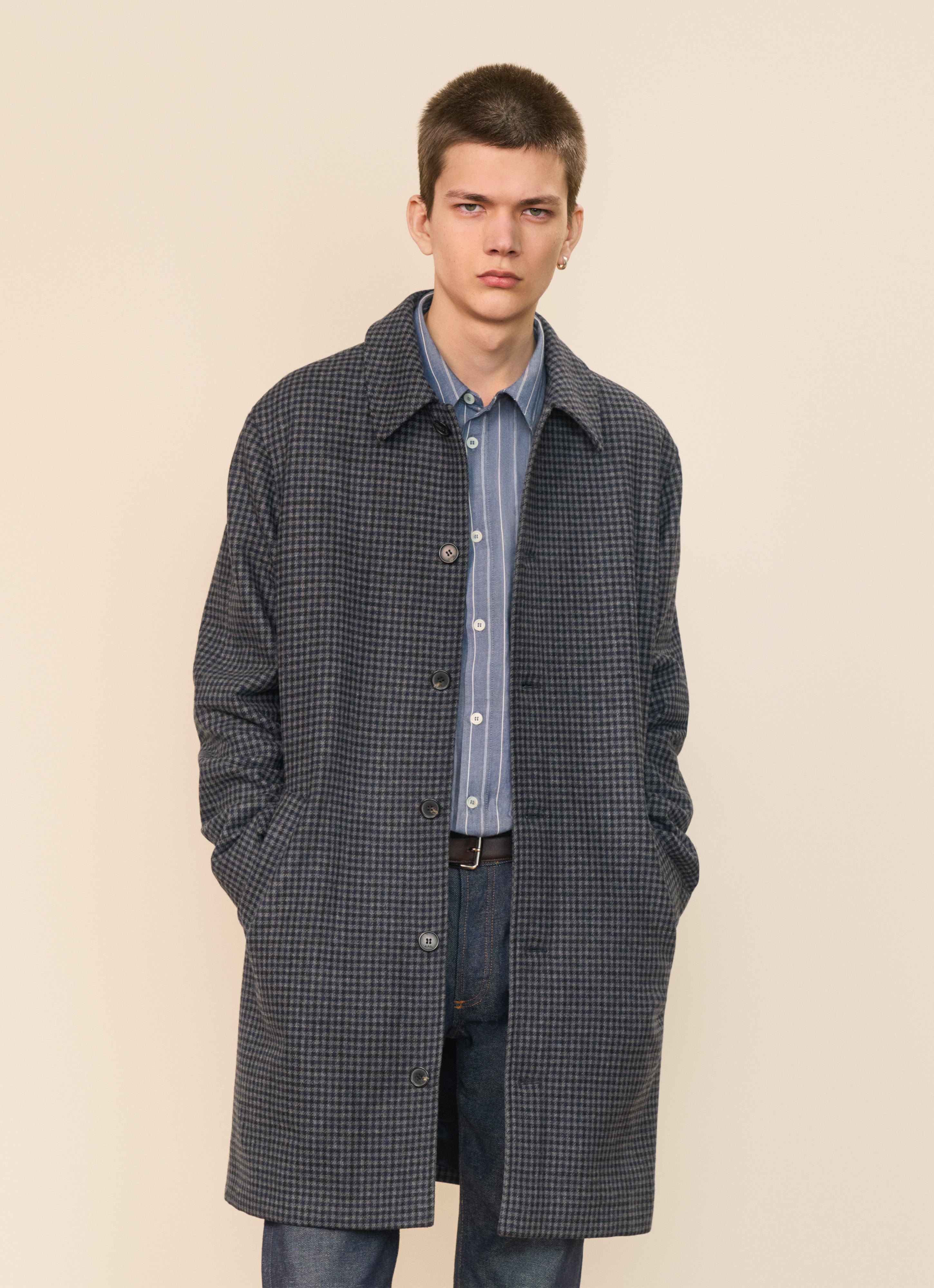 Wollmantel mit Hahnentrittmuster in Anthrazit.