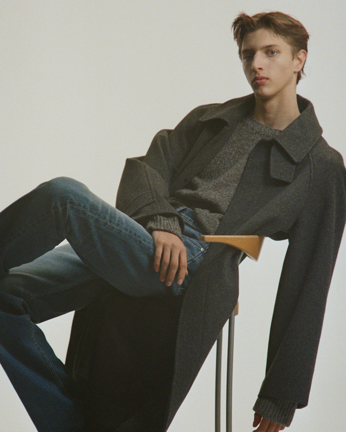 Anthrazitgrauer weitgeschnittener Pullover aus Alpaka und Merinowolle.