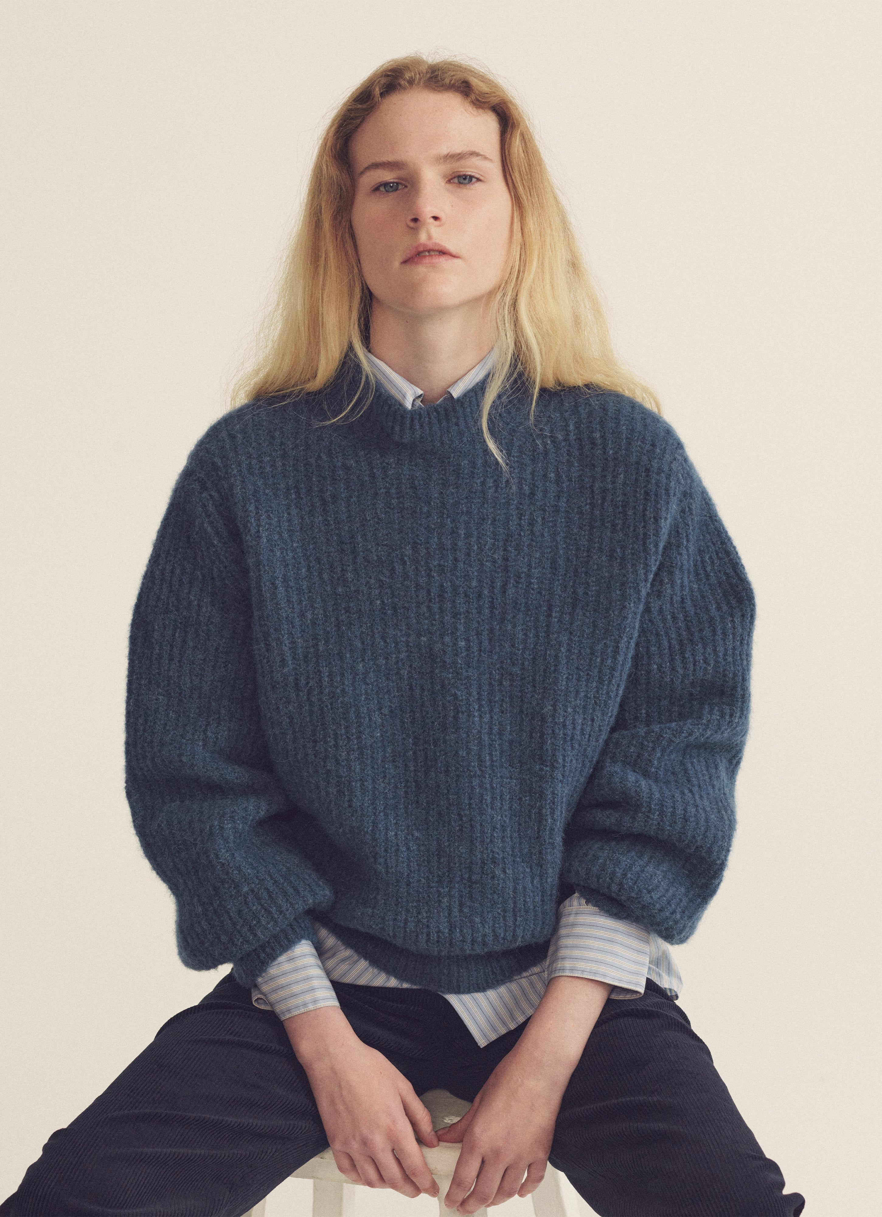 Weitgeschnittener Pullover aus Alpaka in Stahlblau.