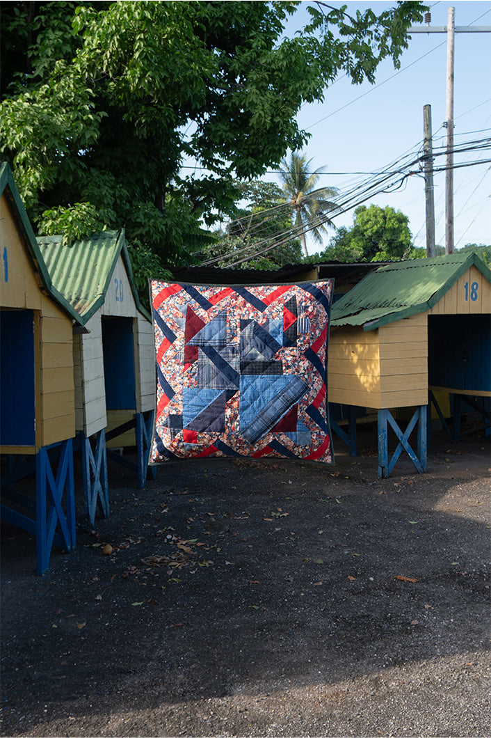 The inspiration for A.P.C.'s Jessica Ogden Quilts Round 26 comes from the Ogden family's artistic legacy. "In 1969, my mother, Annabella Ogden, went to Jamaica to raise funds for Operation Friendship, a school and training center for disadvantaged children in Kingston," says Jessica. "She created greeting cards featuring drawings by local children and artists, along with textile art from my grandmother, Joan Ogden, a skilled batik artist. Joan, or 'Grandma' to me, did a series on butterflies, which became the starting point for Round 26."
